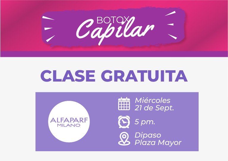✨Botox Capilar✨ TALLER GRATUITO TALLER DICTADO POR (ALFAPAR Milano) FORMULARIO DE REGISTRO Evento al que deseas registrarte: ---Cortes en Tendencias (25 de Agosto)Alisado Perfecto (23 de Agosto) + Añadir Google Calendar Exportación + iCal Fecha Sep 21 2022 Hora 5:00 pm - 7:00 pm Valor GRATIS Etiquetas Capilar Localización DIPASO Plaza Mayor C.C. Plaza Mayor. Av. Rodolfo Baquerizo Nazur junto a Nova Gym Categoría Capilar Organizador GRUPO DIPASO S. A. Teléfono 0962962293 Correo electrónico admweb@dipaso.com.ec Web https://www.dipaso.com.ec/ Compartir este evento