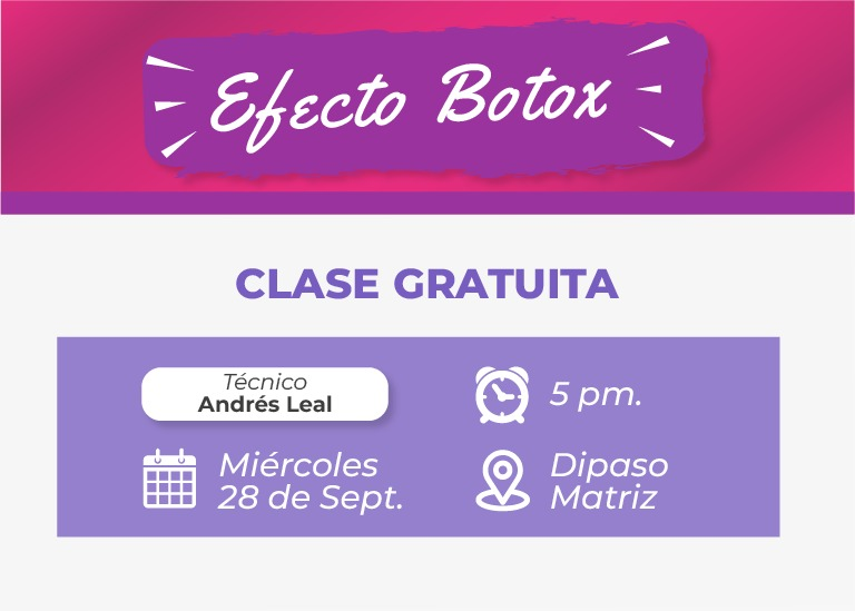 Efecto Botox 🎉 Taller totalmente GRATUITO Taller DICTADO POR EL TECNICO (Andrés Leal/strong>) FORMULARIO DE REGISTRO Evento al que deseas registrarte: ---Cortes en Tendencias (25 de Agosto)Alisado Perfecto (23 de Agosto) + Añadir Google Calendar Exportación + iCal Fecha Sep 28 2022 Hora 5:00 pm - 7:00 pm Valor GRATIS Etiquetas Maquillaje Localización DIPASO Matriz Huayna Cápac 212 y Ayacucho Categoría Maquillaje Organizador GRUPO DIPASO S. A. Teléfono 0962962293 Correo electrónico admweb@dipaso.com.ec Web https://www.dipaso.com.ec/ Compartir este evento