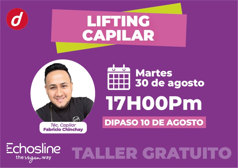 Taller Lifting Capilar✨ Taller capilar gratuito TALLER DICTADO POR (Fabricio Chinchay) FORMULARIO DE REGISTRO Evento al que deseas registrarte: ---Cortes en Tendencias (25 de Agosto)Alisado Perfecto (23 de Agosto) + Añadir Google Calendar Exportación + iCal Fecha Ago 30 2022 Hora 5:00 pm - 7:00 pm Valor GRATIS Localización DIPASO 10 de Agosto Av. 10 de Agosto y 6 de Marzo Categoría Capilar Organizador GRUPO DIPASO S. A. Teléfono 0962962293 Correo electrónico admweb@dipaso.com.ec Web https://www.dipaso.com.ec/ Compartir este evento